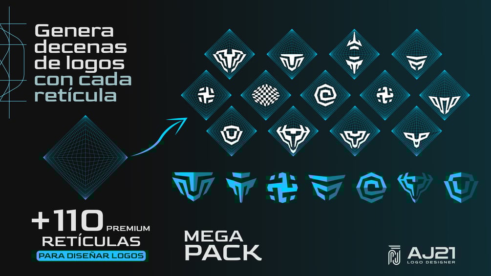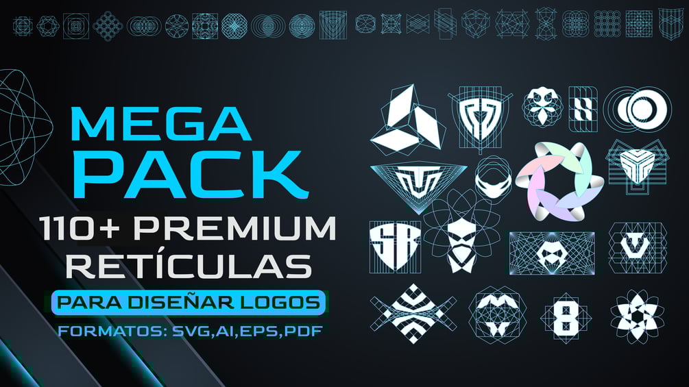 MEGA PACK 110+ PREMIUM RETÍCULAS PARA LOGOS, CREADAS POR @LOGOAJ21 - FORMATOS: SVG, AI, EPS, Y PDF